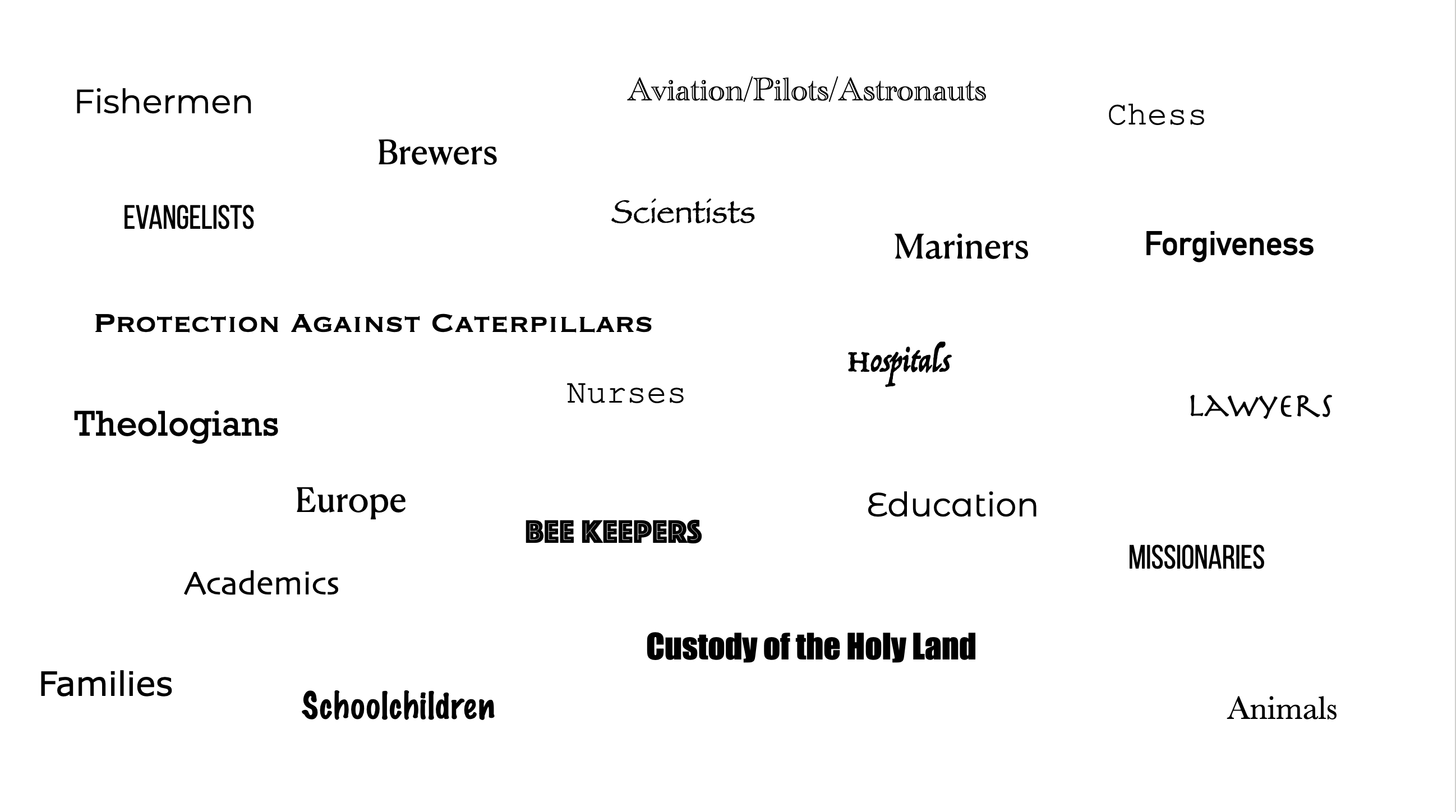 Why do Catholics have special traditions and special Holy Days? How are some Holy Days (like "holidays"???) celebrated? Why do I have to go to Mass on these Holy Days of Obligation? Try your luck at the saints game! How many can you get right?