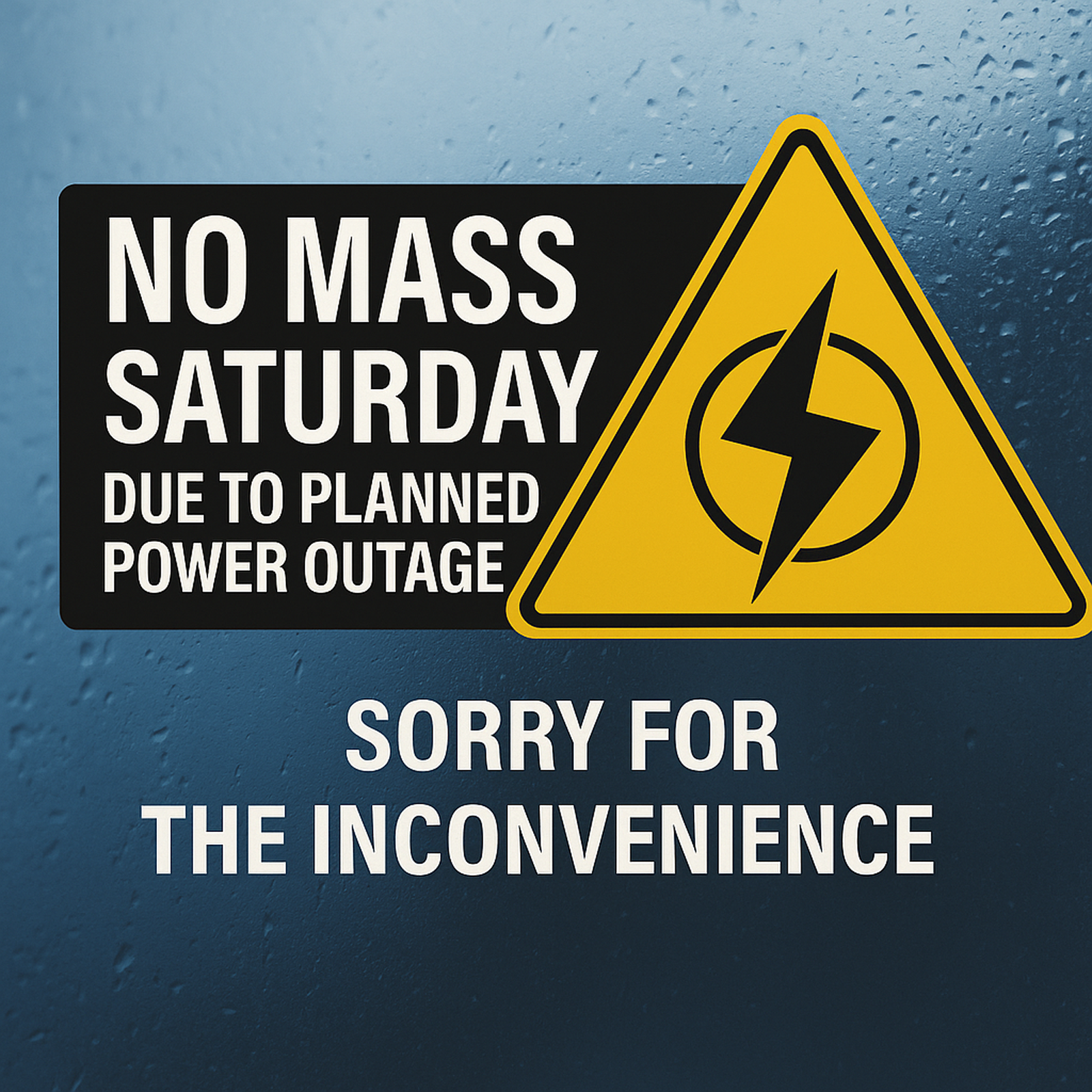 Due to a planned power outage by Rocky Mountain Power on Saturday (12-6 PM), our church campus will be without power. As a result, 3:30 PM Confession and the 5:00 PM Vigil Mass are cancelled. Thank you for helping us spread the word.